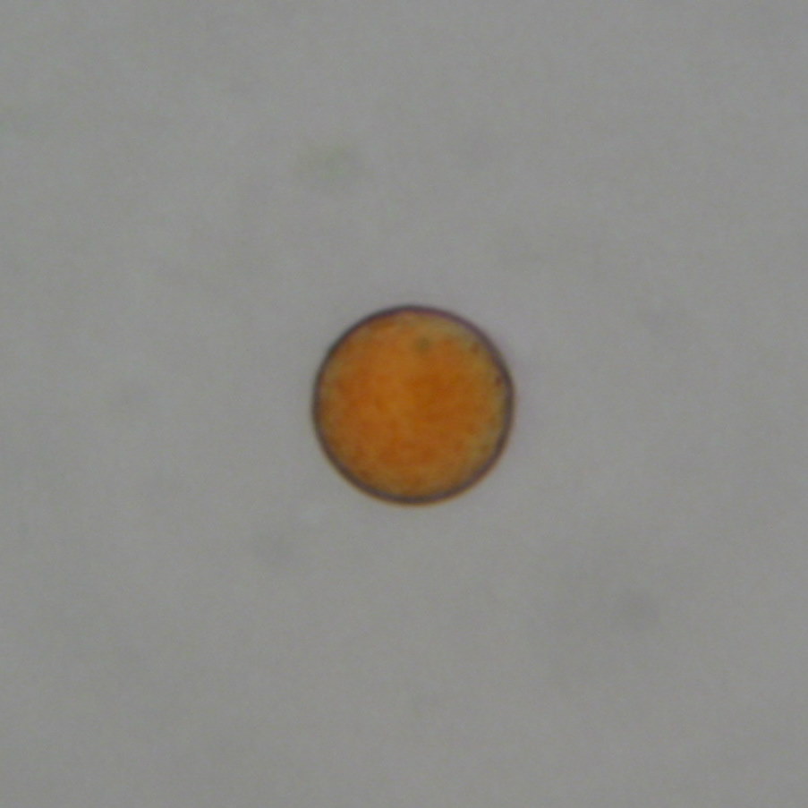 Pollen grain with unusual color, single pore visible - exine sculpture