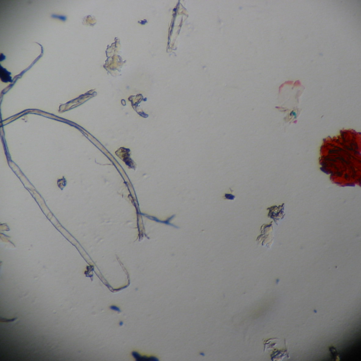 Whiteboard marker dust, fibers, and - yuck! - a lot of skin cells (air sample from my office)