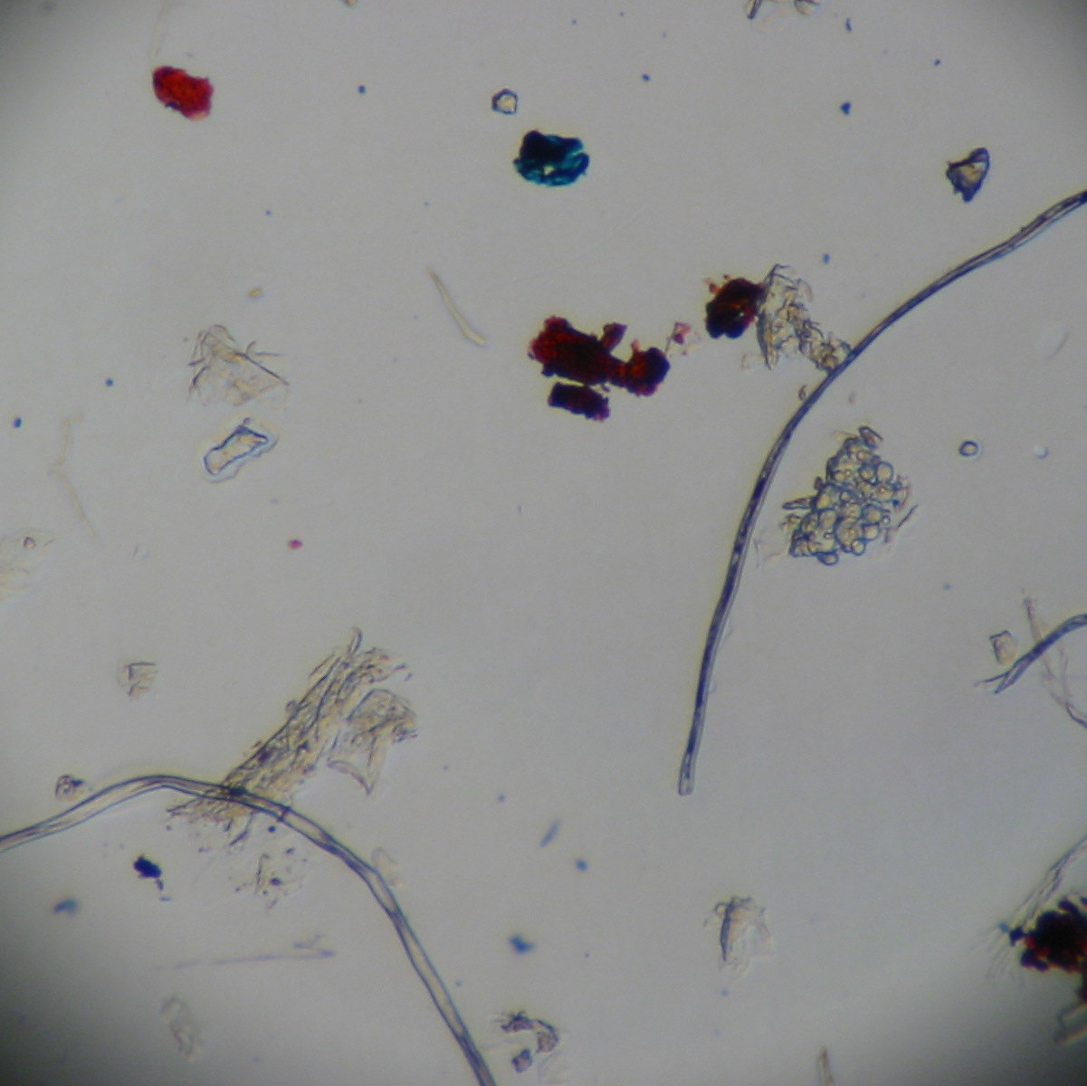 Air sample from my office - fibers, whiteboard marker dust, and a lot of skin cells
