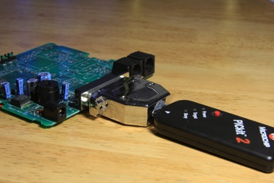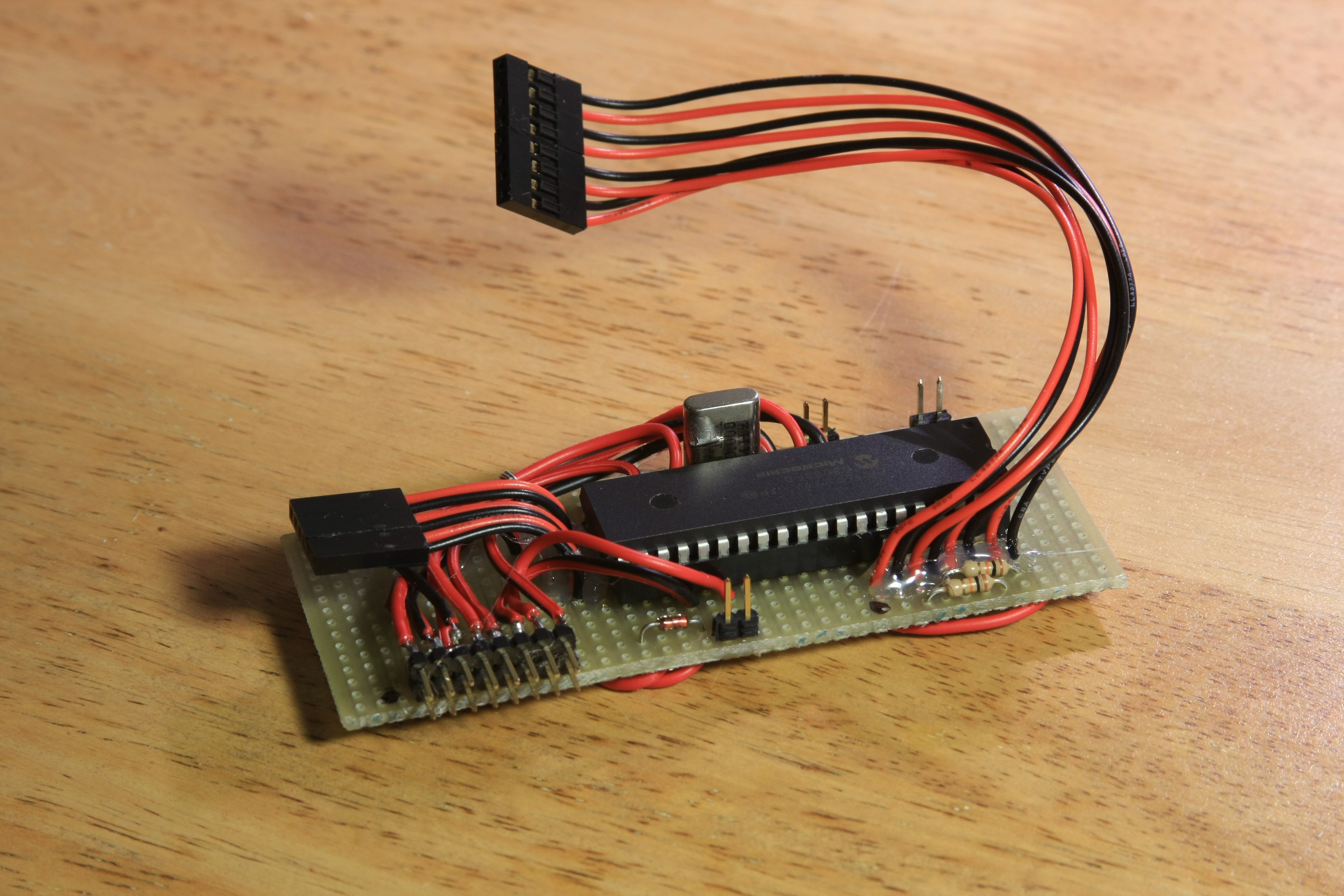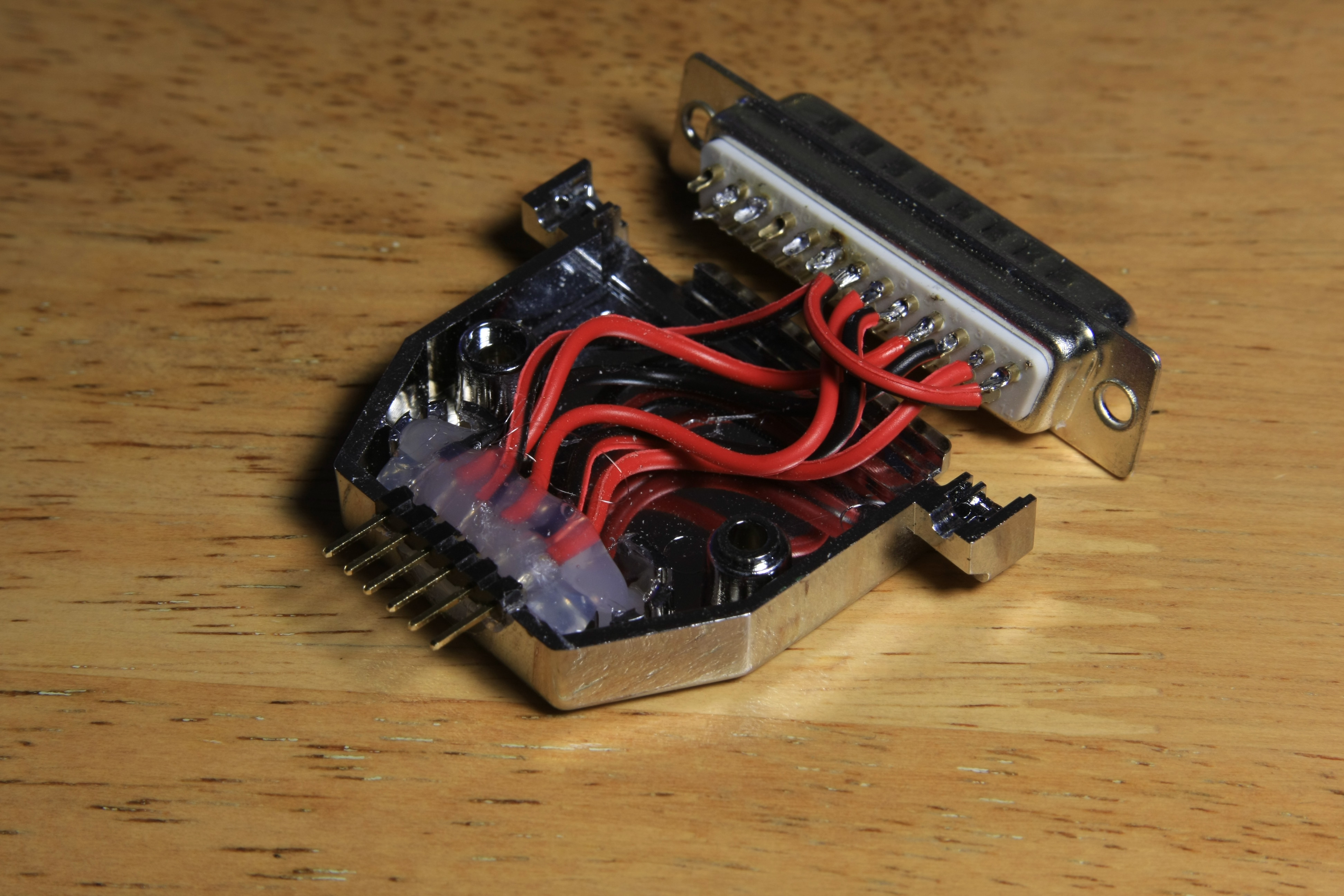 To plug it to the PICKit2 programmer, I took apart a printer cable and did some very mean things to it: