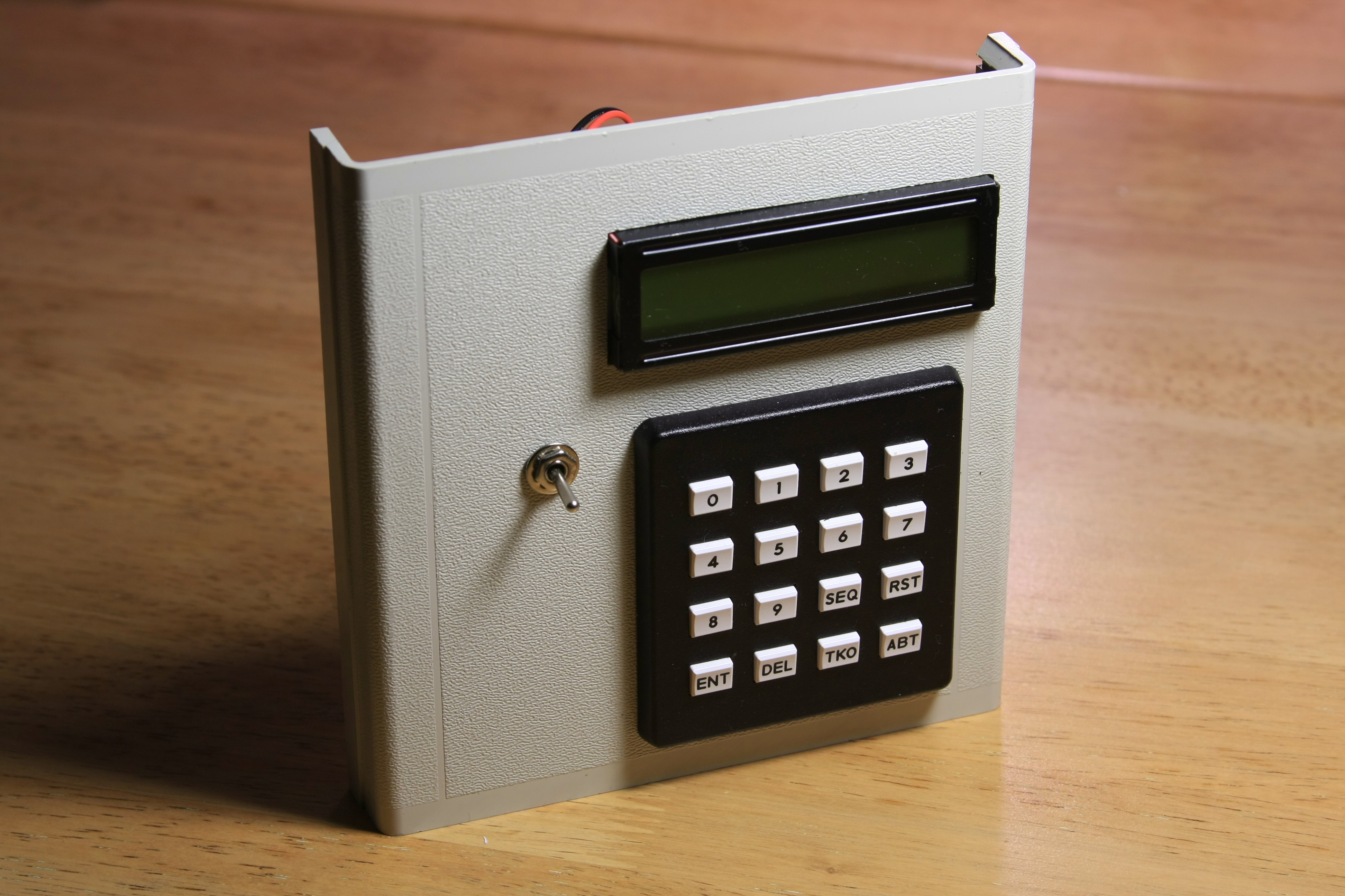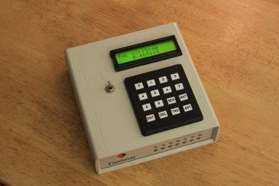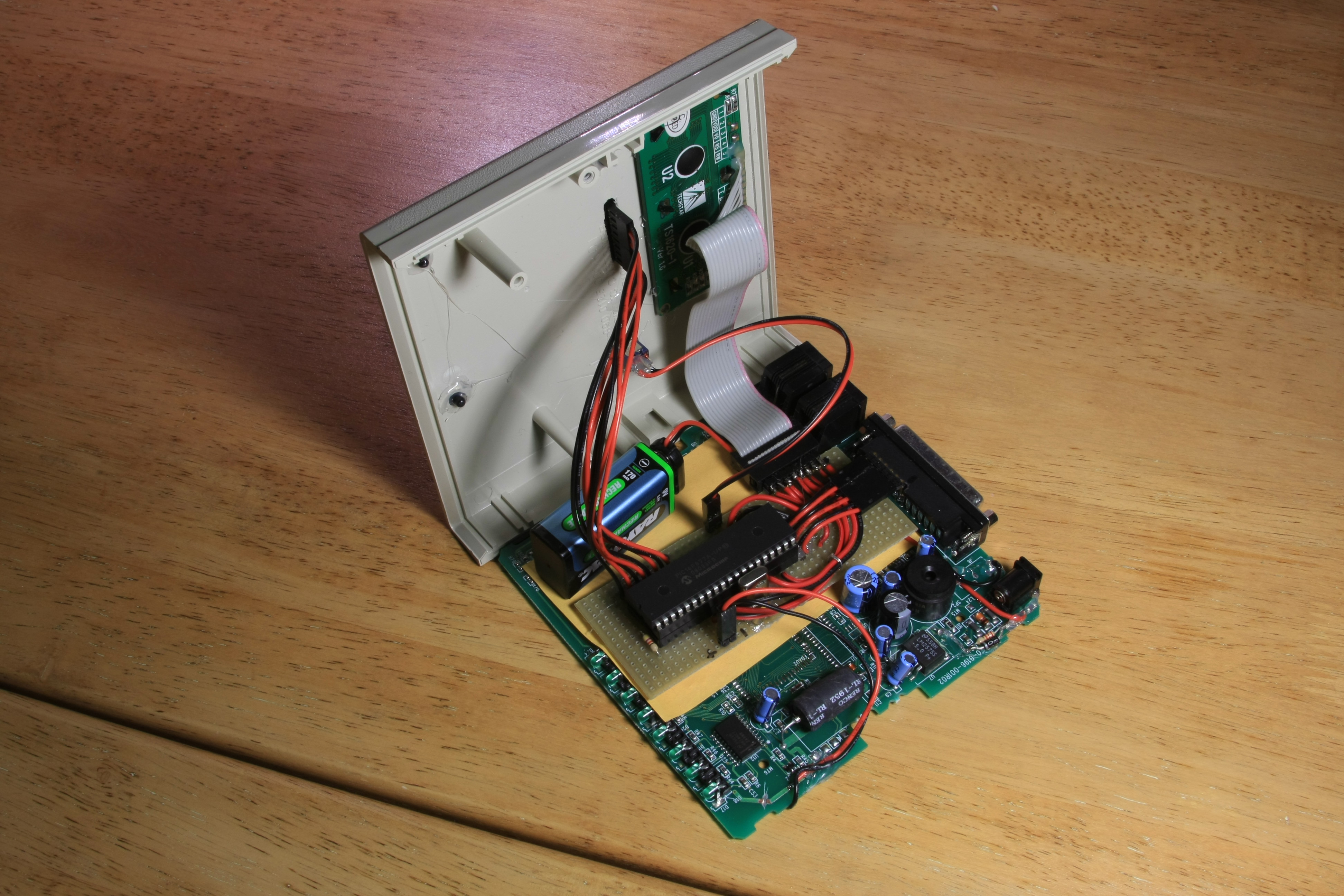 Time for some drilling and filing to attach the keyboard and the LCD module with its backlight switch. Attaching the keyboard and the backlight switch was easy. Making sure that the opening for the LCD module is the exactly right size and accurately positioned was not. But with some care, the end result was quite satisfactory:
