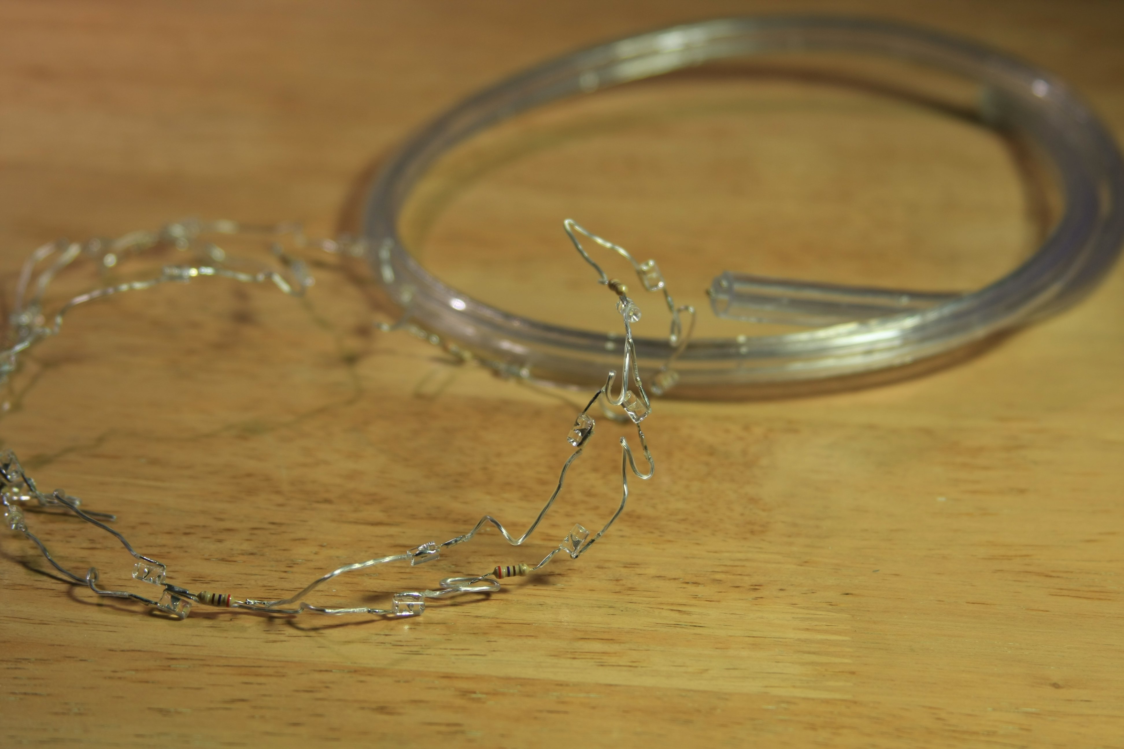 The LEDs are all wired with 24 AWG enameled magnet wire:
