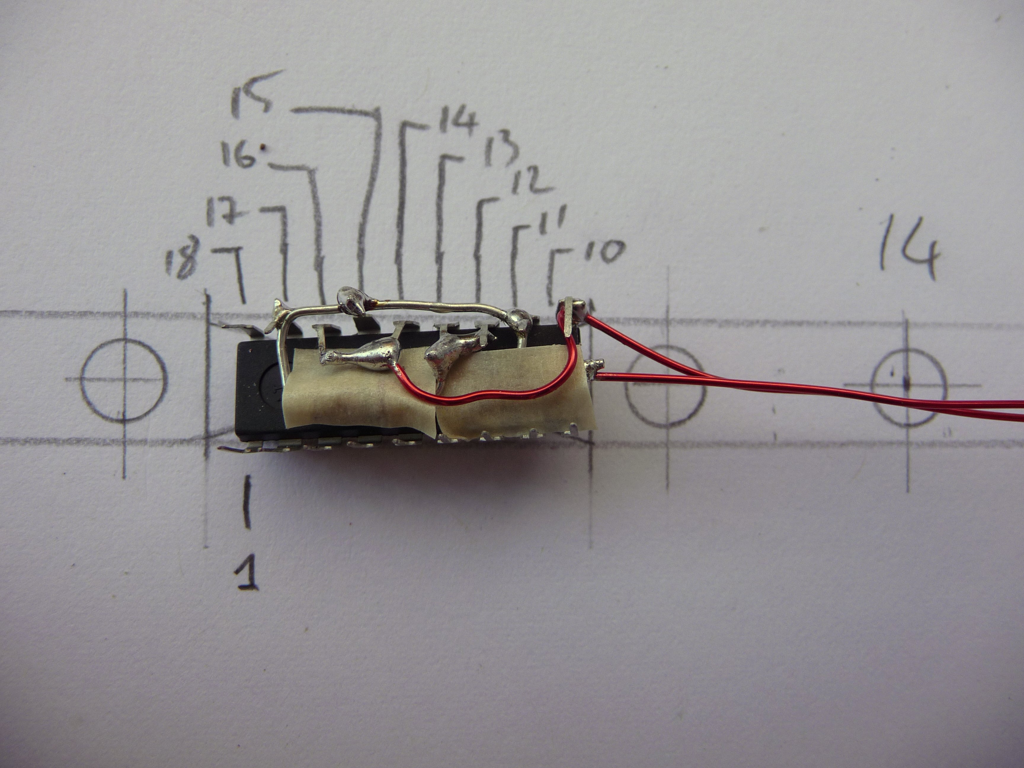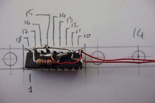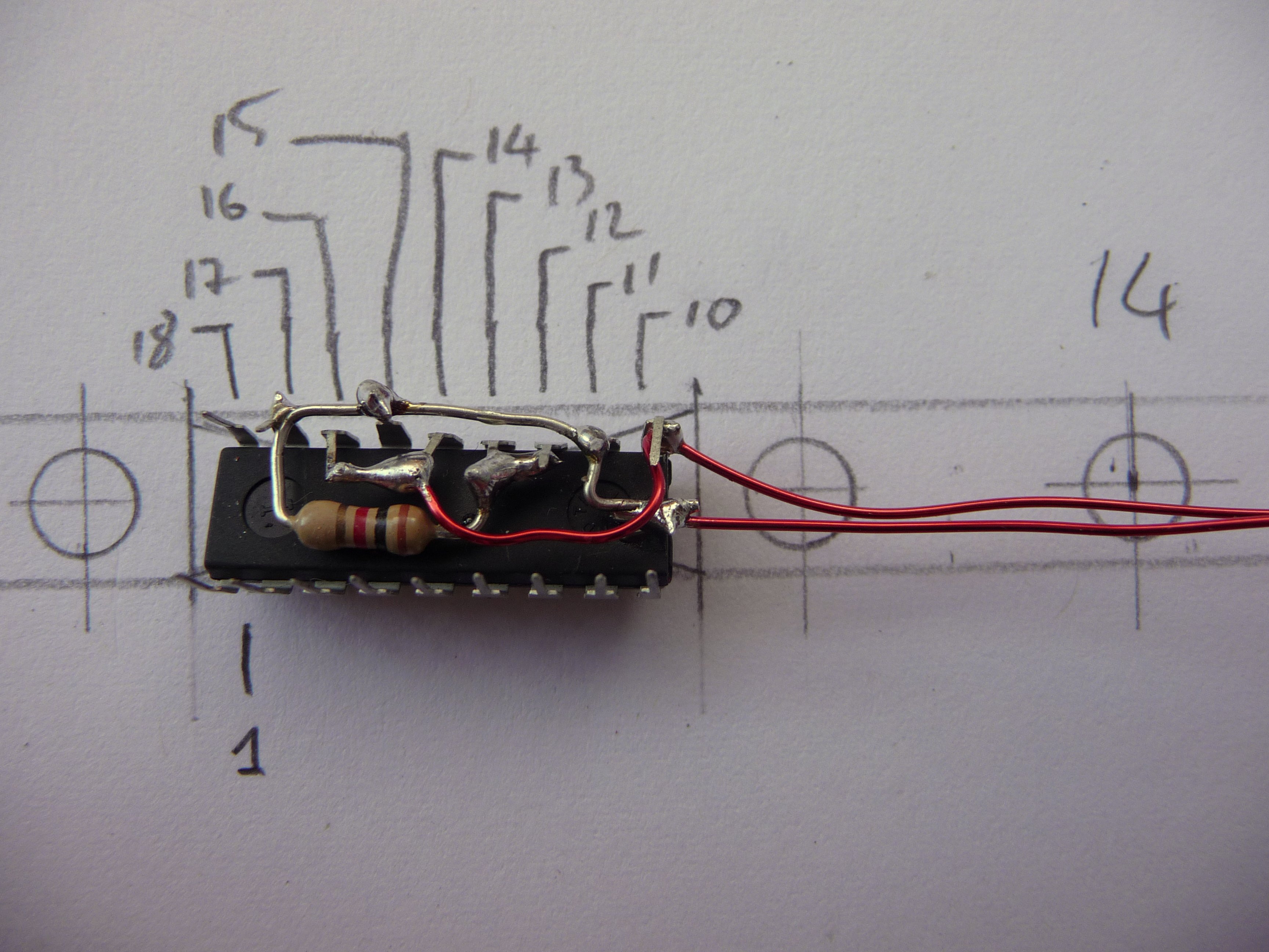 To save space I soldered the resistor directly under the chip:
