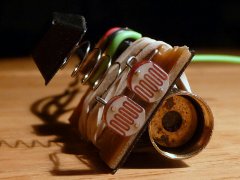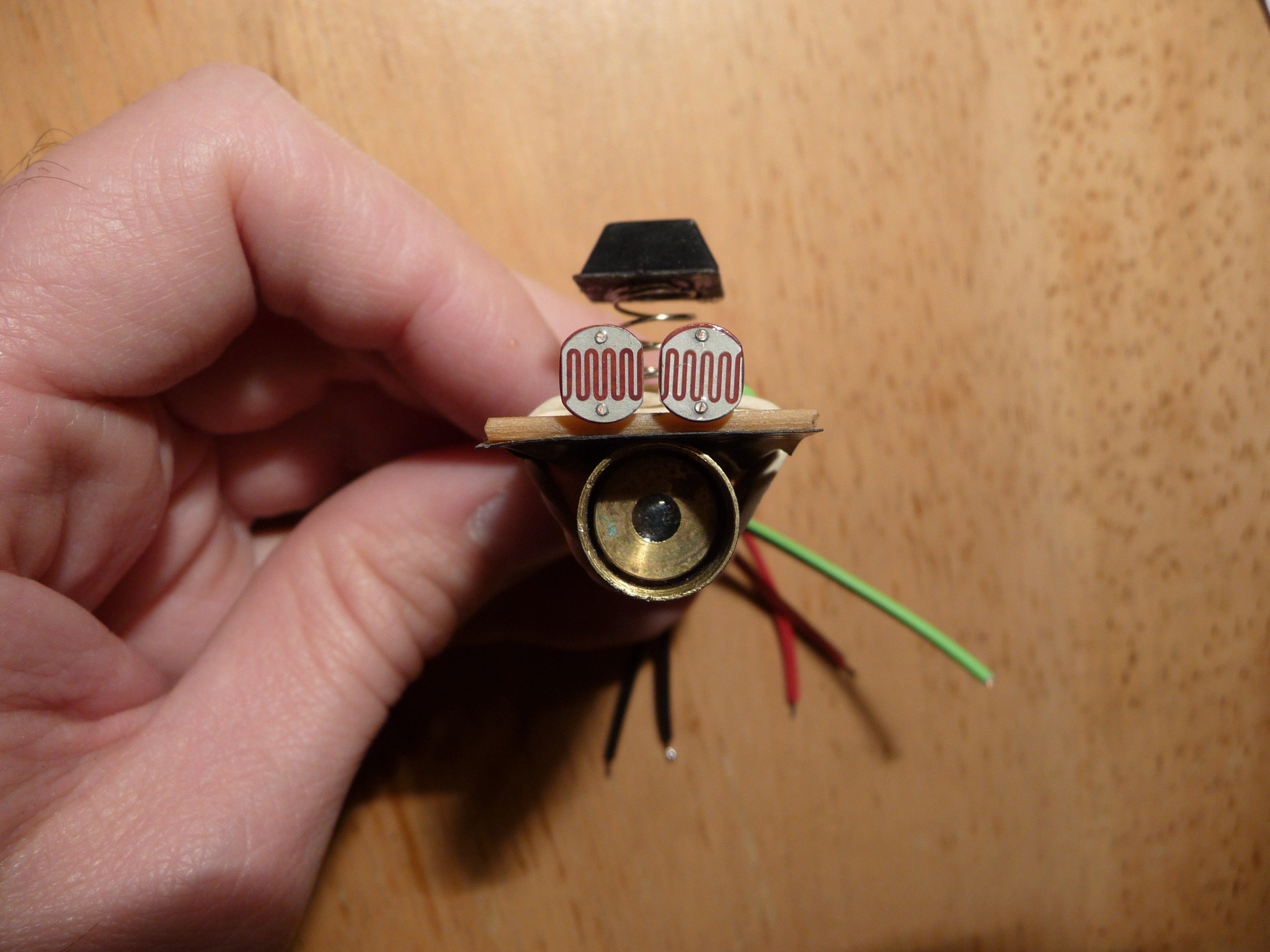 The laser and the sensors are attached to the opposite sides of a small PCB: