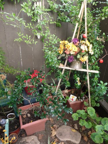 Anyway, after all remaining issues were resolved, to everybody's great relief the magnetometer got installed in it's permanent place - in the patio garden, hidden well out of sight. Can you find it on the picture below?